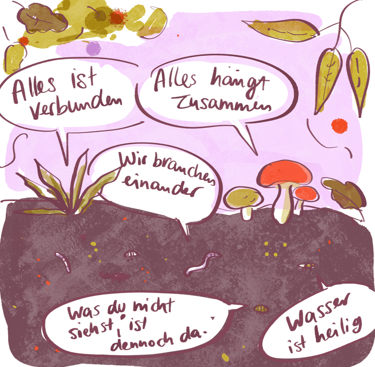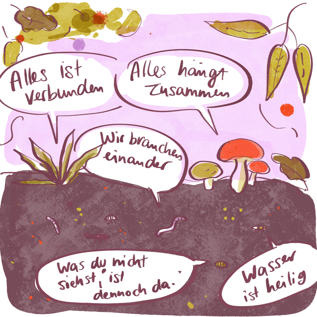 Aber dann habe ich angefangen, anderen Stimmen zuzuhören. Indigenen, Nicht-Westlichen, dem Wissen unserer Vorfahr_innen, den Pflanzen in meinem Garten und den Mikroorganismen im Boden. Und gemerkt: Mein Bild vom Wandel stimmt nicht.